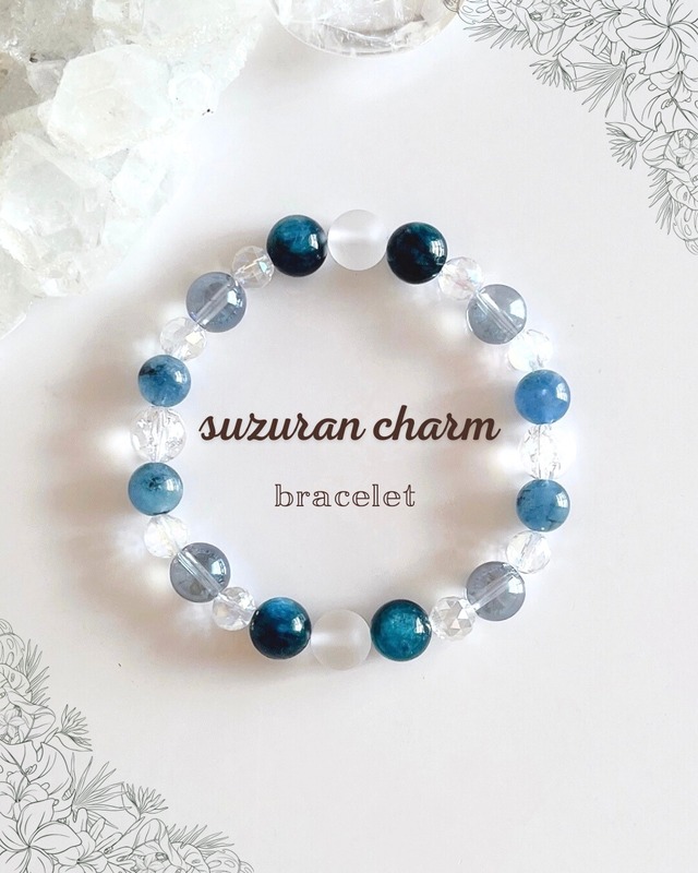 穏やかな世界charmブレスレットです。 心を静寂で心地のよい状態にするような 穏やかな青のブレスレット。 自分の中にある“静かな場所”へ、 いつでも戻れるようにという想いを込めてお仕立てしました。 やわらかなブルーが美しい エンジェルクラウドアクアマリン。 心をやさしく鎮め、穏やかな気持ちへと導くといわれています。 深みのあるインディゴライトブルートルマリンは、 思考を整理し、落ち着いた判断力をサポートするとされる石。 全体を引き締め、大人の静かな強さを添えています。 アイリスクォーツファントムは、 光に当たると透きとおる白さと虹色の輝きを見せ、 浄化と前向きなエネルギーをもたらすといわれています。 エンジェルクラウドアクアマリンには シーラ(白色インクルージョン)が見られます。 写真よりやや落ち着いた色合いで、 天然石ならではの風合いをお楽しみいただけます。 心を穏やかにしたいとき 深呼吸したいとき 静かな安心感を求めるとき 日常にも、特別な日にも寄り添う一本です。 真心を込めてお届けいたします。 素敵なご縁がありますように。 ❈写真と少し色合いが変わります(⁎ᴗ͈ˬᴗ͈⁎) ご了承ください☆。.:*・゜ 太陽光の写真はかなり光って撮れております。 クラウドアクアマリンとは 青色のアクアマリンの中に白い雲のようなものがインクルージョンされているとても不思議な「クラウドアクアマリンブレスレット」。 流通名は他に「フェザーアクアマリン」や「エンジェルクラウド」などとも呼ばれています。 サイズ 約16cm エンジェルクラウドアクアマリン 10ミリ 希少インディゴライトブルートルマリン 7ミリ 高品質アイリスクォーツファントム (約10ミリ、8.5ミリ) ボタン水晶 ◈ブレスレットは作ってから浄化をして、お渡しし ております(⁎ᴗ͈ˬᴗ͈⁎) ◈ ショップ情報をお読み下さい。m(_ _)m ❀suzuran charmより心を込めて❀